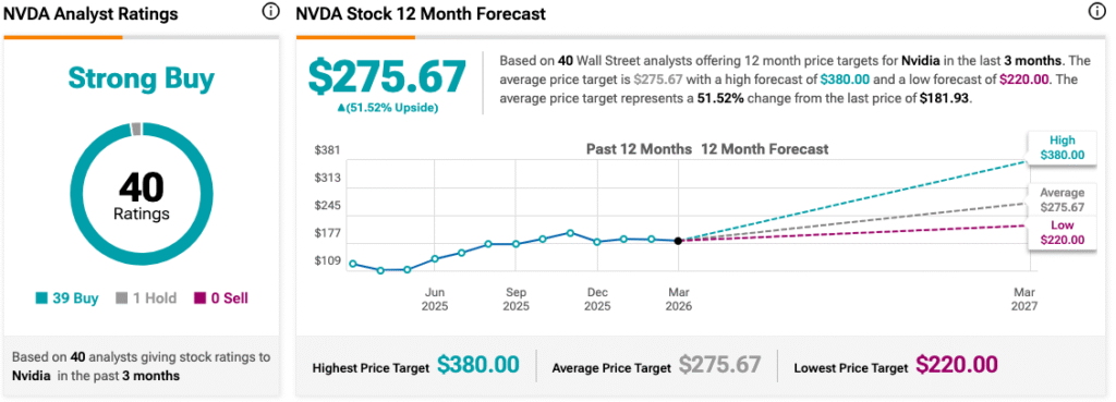 تم تحليل Nvidia (NVDA) من قبل محللي وول ستريت، مع تصنيف إجماعي على TipRanks بـ “شراء قوي”. بينما يقترح 40 محللاً الاحتفاظ، يوصي 39 بالشراء، وواحد فقط ينصح بالاحتفاظ، ولا أحد يوصي بالبيع. في الوقت نفسه، لا تزال Mistral AI وAnthropic وOpenAI شركات خاصة. يمكن للمستثمرين المهتمين بشركات الذكاء الاصطناعي مثل Nvidia النظر في أسهم “شراء قوي” مثل Microsoft (MSFT)، Meta (META)، وMicron (MU) عبر مركز مقارنة الأسهم في TipRanks.
