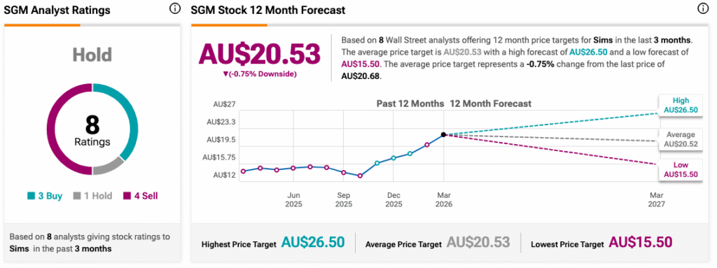 مشاعر المحللين تجاه SGM مختلطة. تظهر بيانات التوقعات على TipRanks تصنيف “انتظار” بالإجماع استنادًا إلى 8 مراجعات حديثة من المحللين: 3 شراء، 1 انتظار، و4 بيع. يبلغ متوسط هدف السعر لمدة 12 شهرًا حاليًا 20.53 دولار أسترالي. علاوة على ذلك، كان بيريل هو الأحدث في الإدلاء برأيه، حيث رفع تصنيف SGM إلى “شراء”، بينما منح جولدمان ساكس (GS +0.61% ▲) بول يونغ تصنيف “انتظار”، واحتفظ مورغان ستانلي (MS +1.46% ▲) بجودة “بيع”.