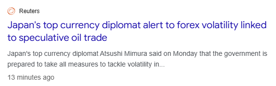 قال سومومورا أون للصحفيين في ذلك اليوم إن هناك رأيًا في السوق مفاده أن النشاط المضارب في سوق العقود الآجلة للنفط يمتد ليؤثر على سوق الصرف الأجنبي. وفي الوقت الذي أدلى فيه بهذا التصريح، اقترب سعر صرف الدولار مقابل الين مرة أخرى من مستوى نفسي مهم عند 160.