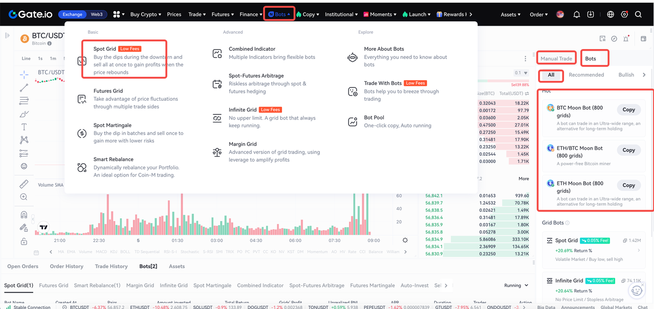 Cuando Bitcoin vuelve a caer a 53 000 USDT, los inversores que utilizan el bot Grid Moon pueden aprovechar la oportunidad de compra en niveles bajos, una estrategia difícil de ejecutar con métodos tradicionales. Esto demuestra que el bot Grid Moon no es solo un sistema de trading con grid, sino una herramienta eficiente para adaptarse a los cambios del mercado y ofrecer oportunidades de arbitraje estables en mercados volátiles.