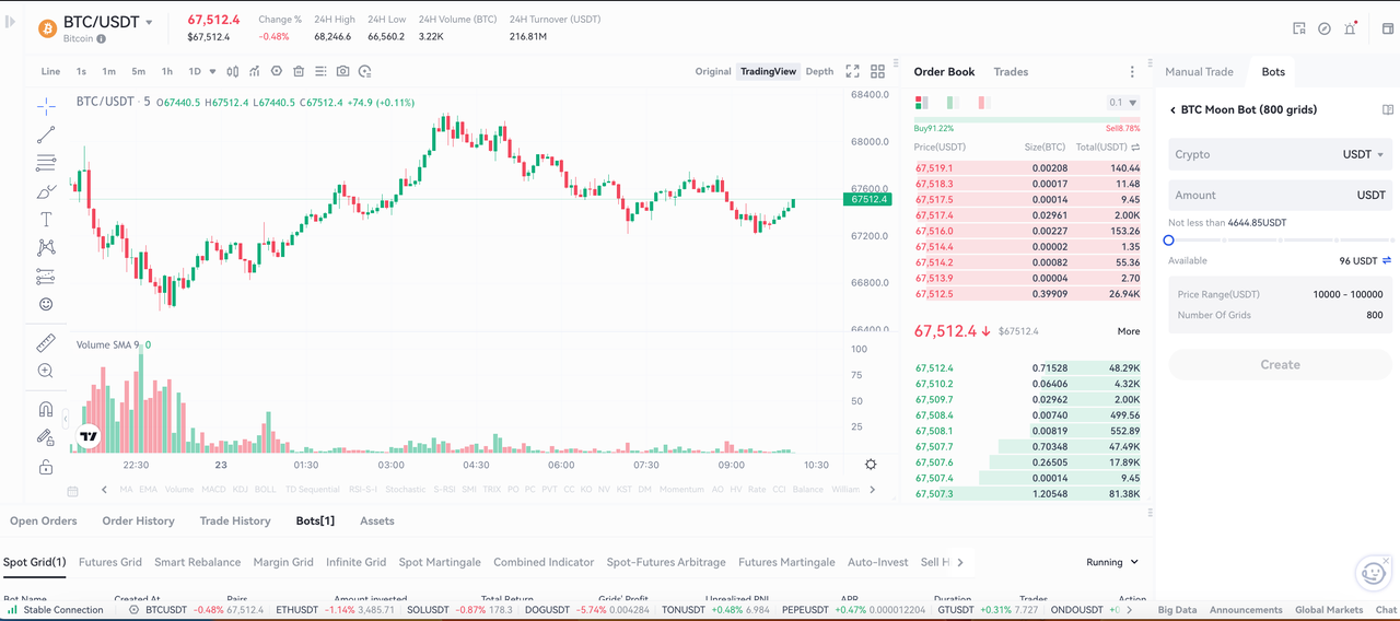 Usando la estrategia del BOT de MOON BTC como ejemplo, analicemos su rendimiento en las condiciones recientes del mercado: