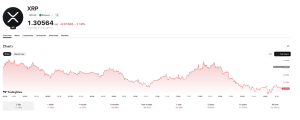 • XRP:$1.31、**1.13%**下落