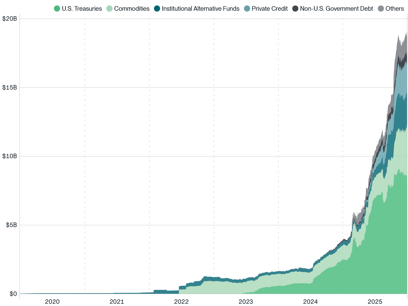 No entanto, os dados são claros. Observe o gráfico do crescimento dos ativos do mundo real tokenizados. A curva é mais íngreme que o Everest.