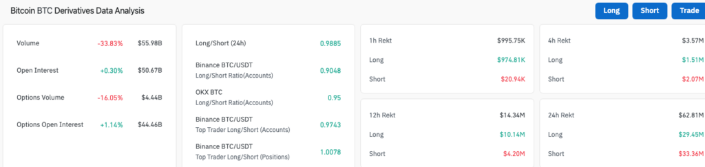 Bitcoin trades within a narrow range around $74,000. Ethereum slightly recovers. 24-hour global liquidations reach $265 million, with long positions dominating. The market is awaiting tonight’s Federal Reserve FOMC rate decision.