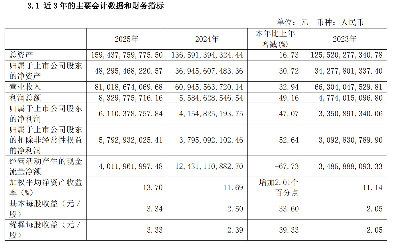 Huayou Cobalt опублікувала річний звіт за 2025 рік. У звітному періоді компанія досягла виручки 8B юанів, що на 32.94% більше; чистий прибуток, що належить акціонерам компанії, становив 81.02B юанів, що на 47.07% більше, і є найвищим історичним рівнем з часу заснування компанії.