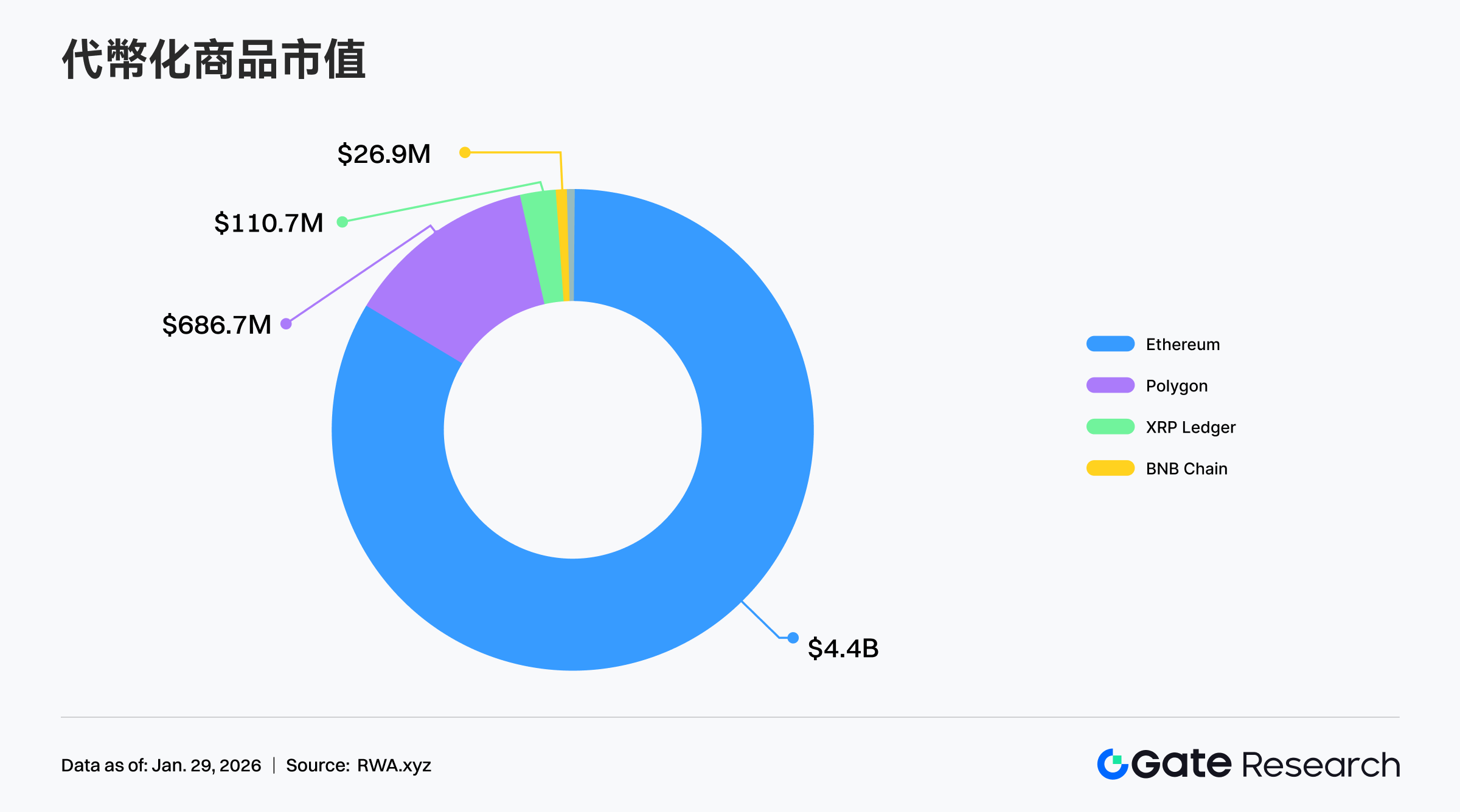 從發行分布來看,代幣化大宗商品目前呈現明顯鏈上集中化特徵:約 85% 相關資產選擇在以太坊發行,反映其在資產代幣化領域的「預設基礎設施」地位。這背後來自多重因素:成熟的智慧合約與審計體系、穩定的 DeFi 流動性與抵押借貸場景、機構與託管/合規服務整合度高,以及強大的可組合性(便於與穩定幣、RWA、收益產品結構化組合)。因此,若評估代幣化商品市場深度、二級流動性與金融玩法,以太坊往往是最早形成「網路效應」的核心場域。