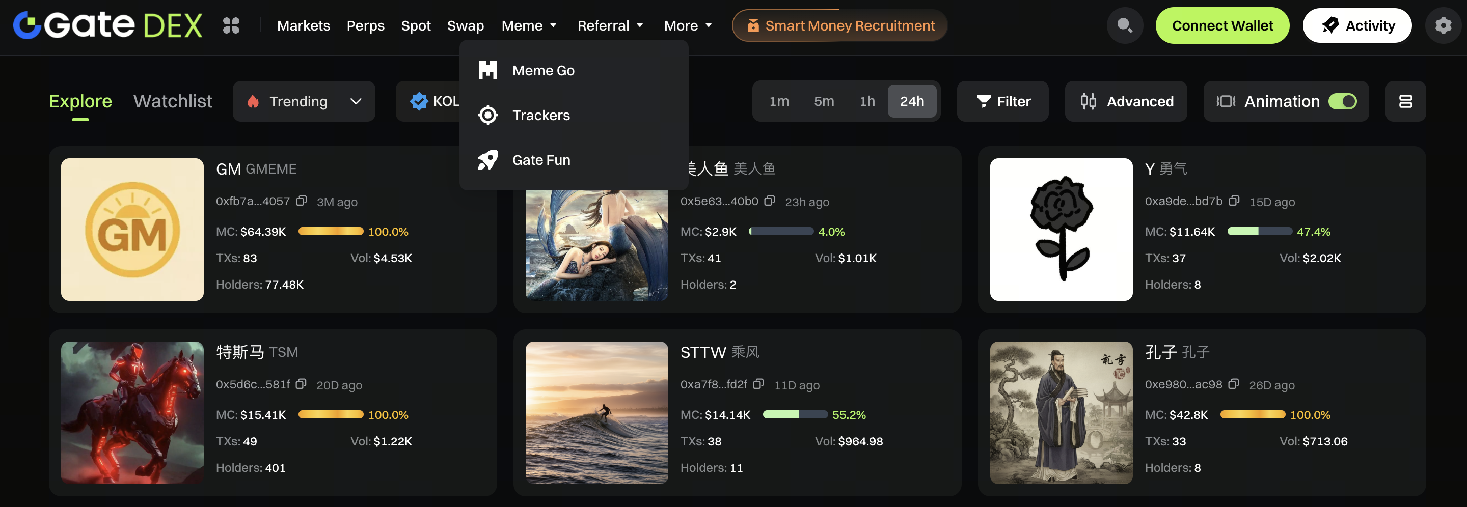 圖:https://web3.gate.com/gatefun?tab=explore