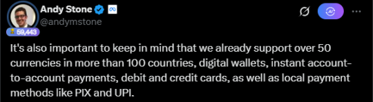 Meta 发言人 Andy Stone 在回应中还特别强调了 Meta 目前已经支持 100 多个国家 / 地区的 50 多种货币和支付方式,试图淡化「稳定币」的特殊性,将其包装成「现有支付基建的延伸」。