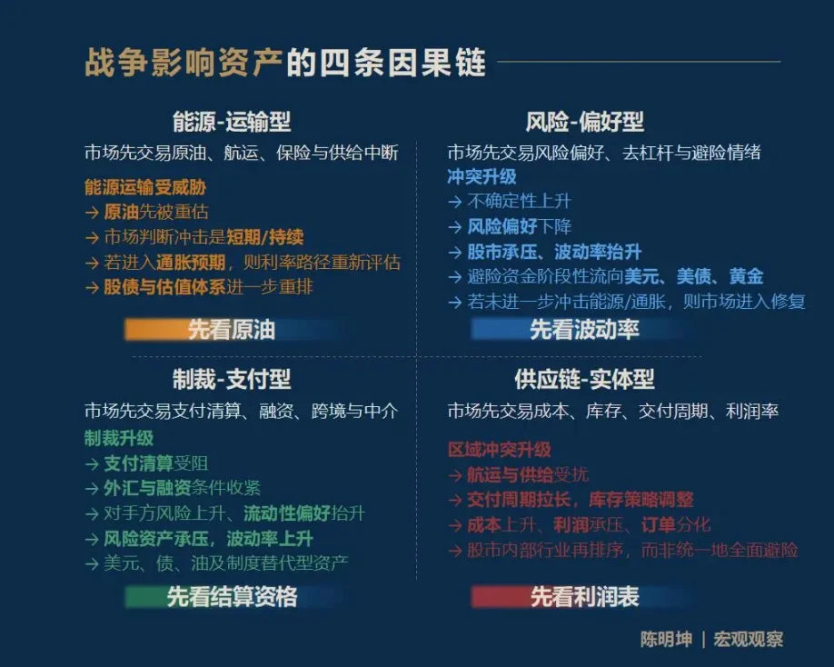 先给结论,战争影响资产,最常见的不是一个统一答案,而是四条完全不同的传导路径: